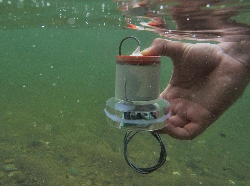Today, underwater communication is hard. Radio waves, powering almost all wireless communication in air, can’t travel more than a few 10s of meters through water. Alternatively, communicating with sound works well (like dolphins and whales!), however, it takes a large amount energy to send these sound waves long distances. If you’re trying to build a sensor to continuously monitor ocean temperatures, or river bacterial levels, this is a problem. A battery powered system would need recharging every few days.